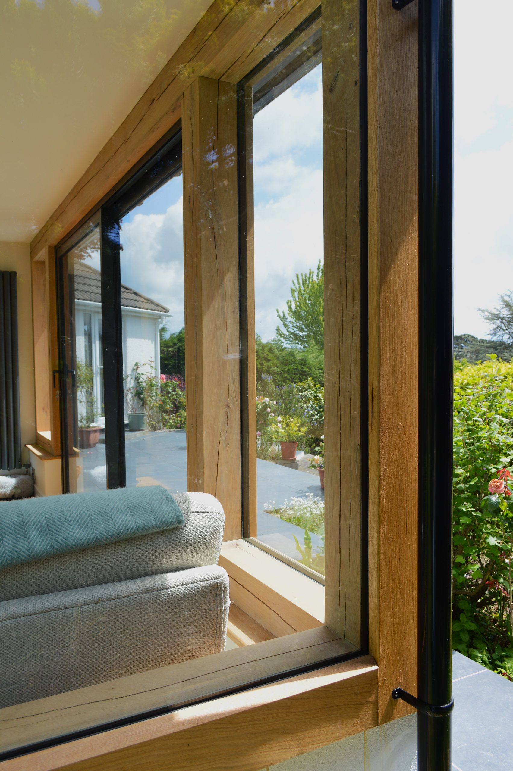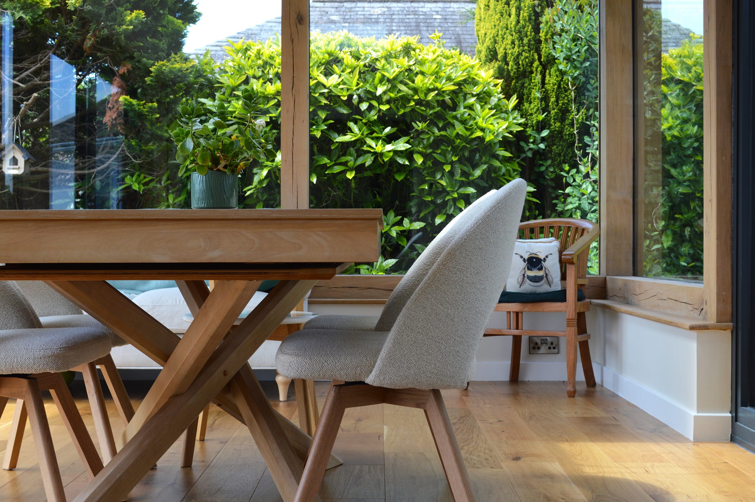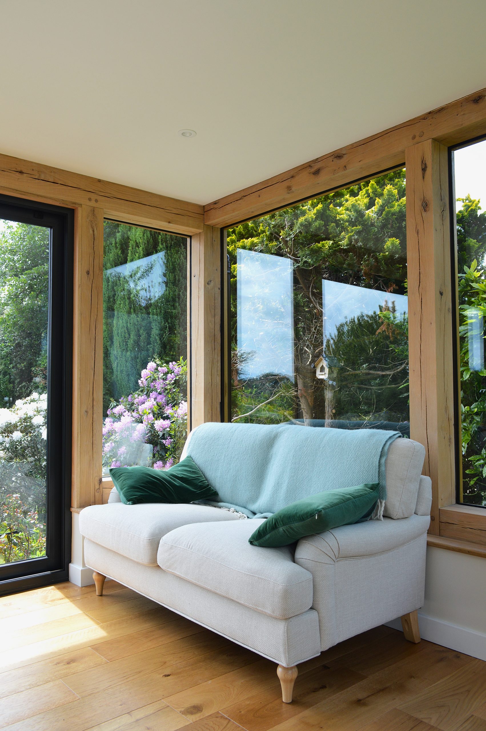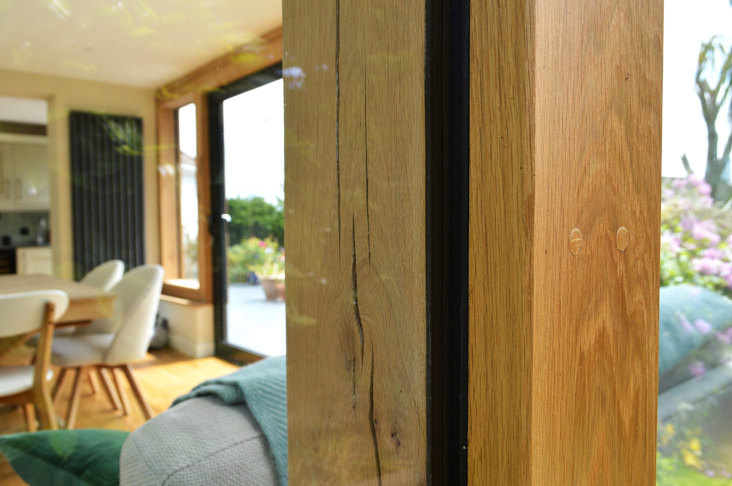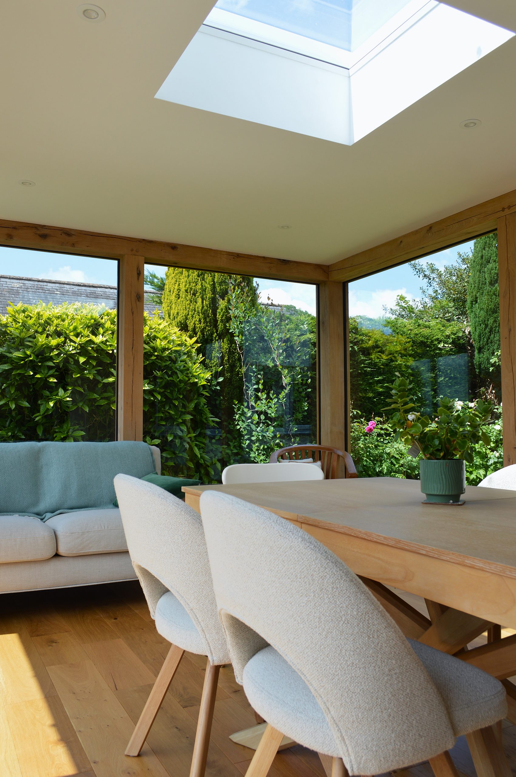 A beautifully simple oak framed extension, where rugged and robust natural materials shine.